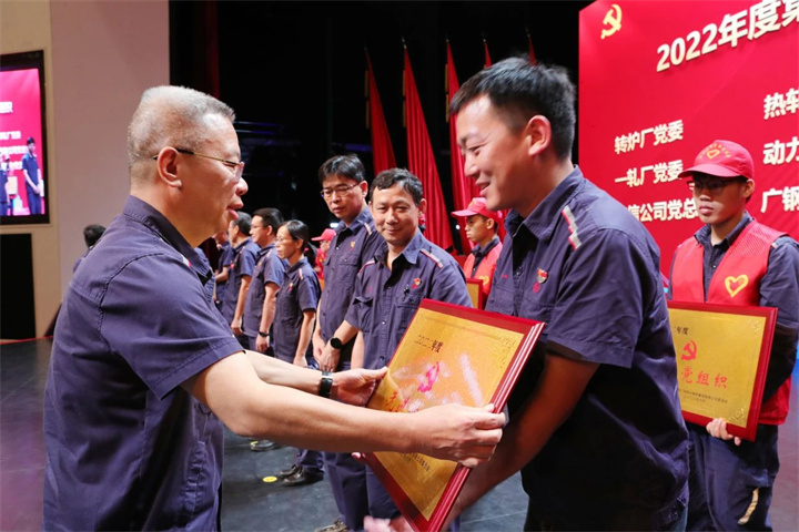 集團領導上臺為獲得先進基層黨組織、宣傳文化工作優秀單位、優秀黨務工作者、優秀共產黨員的集體和個人頒獎。